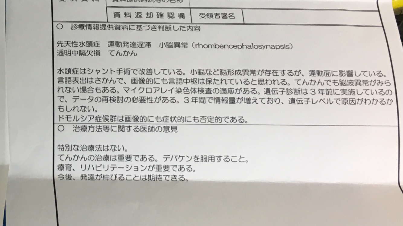 2019/7/2にayukiのセカンドオピニオンを受けに大阪母子医療センターの岡本伸彦先生の所へ行きました。